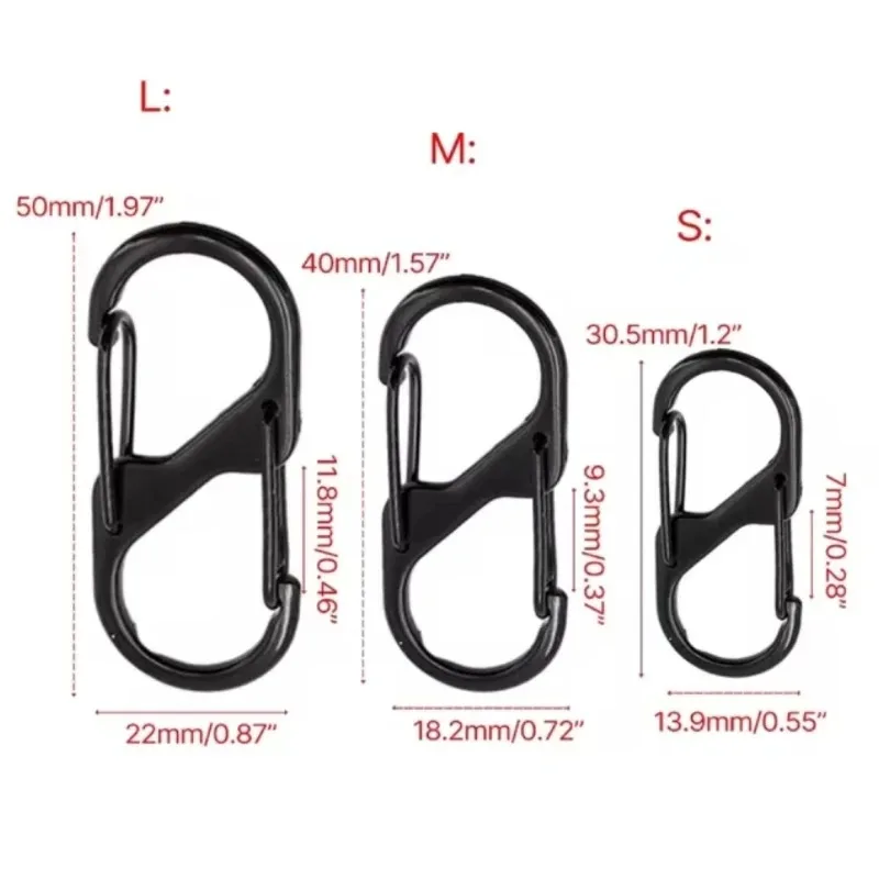 This S-shaped carabiner is a versatile multi-tool, perfect for camping, fishing, and traveling. Its double hooks and small spring clips make it a handy accessory for any outdoor activity.